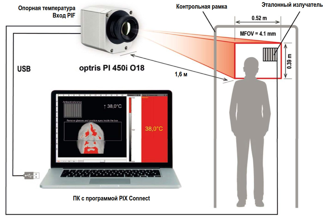 Вирусные эпидемии, такие как ТОРС, БВРС, свиной грипп или нынешний коронавирус / COVID-19 породили огромный спрос по всему миру на инфракрасные камеры, способные выявлять повышенную температуру у людей. Компания Optris предлагает для этого отличное решение. Модели T010 тепловизоров Xi 400 и Pi 450i представляют собой камеры, специально предназначенные для этой задачи, которые обеспечивает чувствительность до 40 мК и позволяют легко распознавать повышенную температуру тела человека. Поскольку сейчас многие сотрудники возвращаются на работу после отмены карантина, связанного с вирусом, для компаний очень важно, чтобы они не заразились от работников, которые могли подхватить вирус за пределами предприятия. Данная система выявления повышенной температуры может использоваться в различных вариантах и местах, как для индивидуального сканирования отдельных людей, так и больших групп. Процедура установки всей системы, включая эталонный излучатель и программное обеспечение PIX Connect, которое поставляется с заранее заданной схемой выявления повышенной температуры, очень проста. Кроме того, в случае необходимости ее можно переместить и настроить за минимальное время. Система работает незаметно. Программное обеспечение выделяет людей, чья температура кожи превышает заданное значение. Визуальная сигнализация позволяет быстро выделять людей, у которых наблюдается повышенная по сравнению со здоровыми людьми температура, что позволяет сотрудникам службы безопасности проверить их внутреннюю температуру и наличие у них дополнительных симптомов. Всякий раз, когда температура превышает предварительно установленный порог, могут сохраняться тепловые изображения с результатами измерения температуры.
